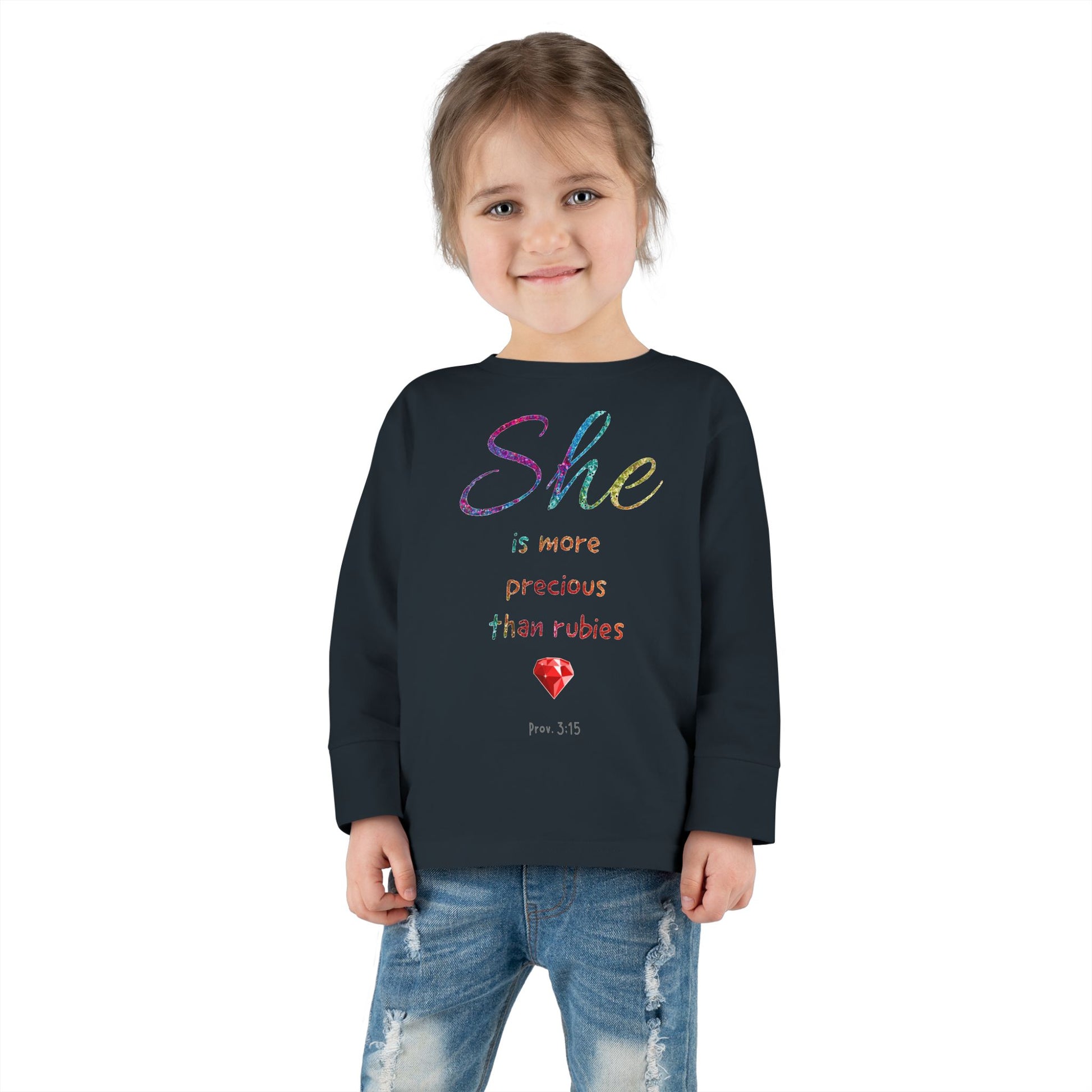 She is more precious than rubies, sparkle, Youth/toddler long Sleeve Tee